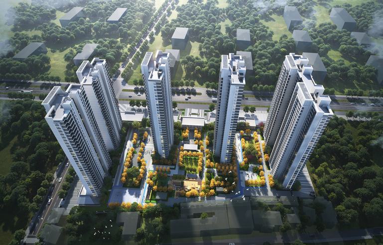 項(xiàng)目占地47.5畝,規(guī)劃總建筑面積11.9萬(wàn)平方米,項(xiàng)目容積率僅2.99,綠化率高達(dá)35.7%,共規(guī)劃有5棟高層住宅及商業(yè)裙樓。小區(qū)人行主通道為8棟(售樓部)入戶大堂,兩個(gè)車行出入口分別位于地塊西北角與東南角。采用現(xiàn)代的建筑風(fēng)格,立面以豎向線條交錯(cuò),以冷色材質(zhì)作為主色調(diào),營(yíng)造高端、大氣的建筑氣質(zhì)。