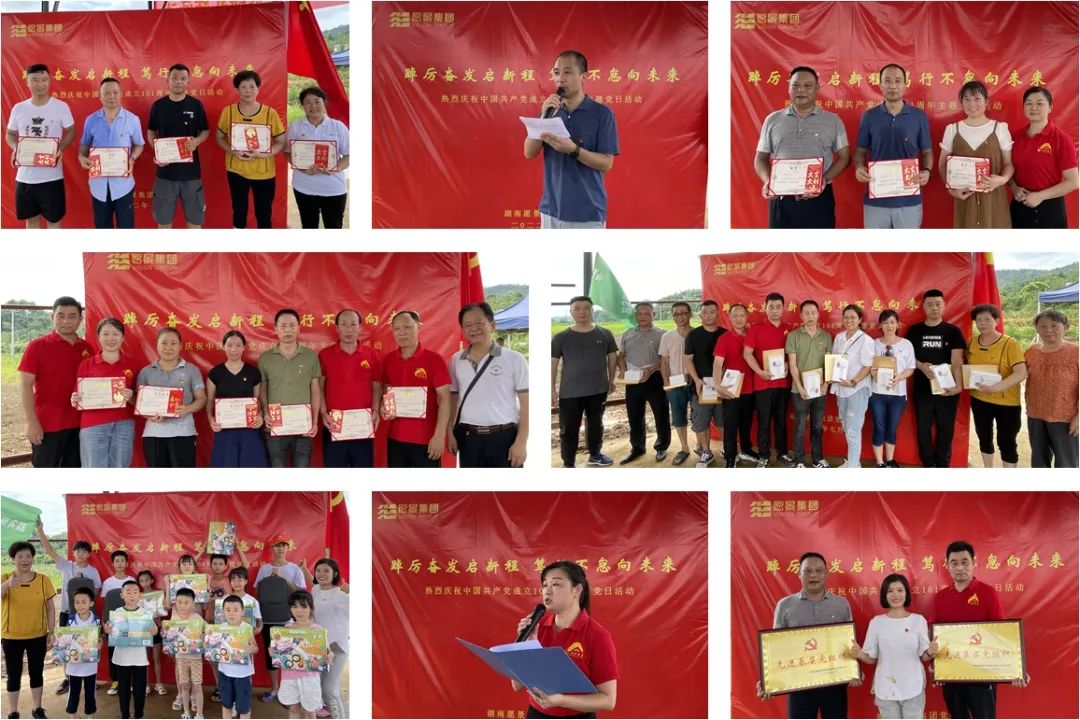 勞動(dòng)結(jié)束后,在農(nóng)業(yè)基地全體黨員舉行了一場(chǎng)簡(jiǎn)樸而熱烈的慶祝中國(guó)共產(chǎn)黨成立101周年的七一慶祝大會(huì)。會(huì)上集團(tuán)黨委向今年的優(yōu)秀共產(chǎn)黨員、優(yōu)秀黨務(wù)工作者、先進(jìn)支部予以表彰頒獎(jiǎng),對(duì)學(xué)習(xí)強(qiáng)國(guó)學(xué)習(xí)積分排名前十的學(xué)習(xí)標(biāo)兵進(jìn)行表?yè)P(yáng),也為積極參加勞動(dòng)實(shí)踐表現(xiàn)優(yōu)秀的愿景少年們頒發(fā)了小獎(jiǎng)品,送上爸媽工作單位對(duì)他們的一片關(guān)心和關(guān)愛(ài)之情。黨委書記張嬌同志以講黨課形式,向全體黨員分享了對(duì)黨的認(rèn)識(shí)、對(duì)公司的認(rèn)識(shí)、以及作為新時(shí)代企業(yè)黨員怎么擔(dān)當(dāng)作為。希望全體黨員、積極分子珍惜當(dāng)下,銘記黨恩、感恩公司,從提高黨員意識(shí)作表率、加強(qiáng)學(xué)習(xí)提升工作能力、立足崗位實(shí)干貢獻(xiàn)三個(gè)方面增強(qiáng)擔(dān)當(dāng)作為,勉勵(lì)大家同心同德,一起加油努力,把愿景建設(shè)更美好。