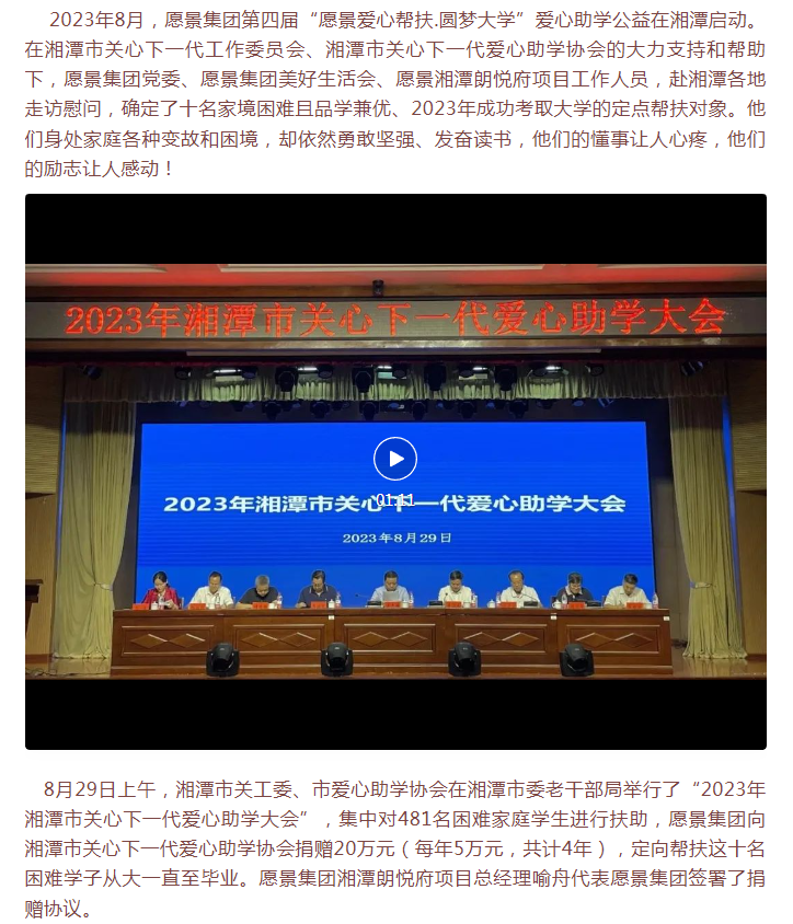 愿景集團-愿景公益|第四屆“愿景愛心幫扶.圓夢大學”愛心助學在湘潭啟動