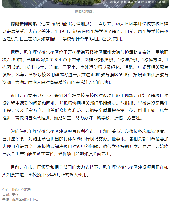 湘潭-愿景朗悅府 【轉】雨湖區這所學校預計9月投入使用