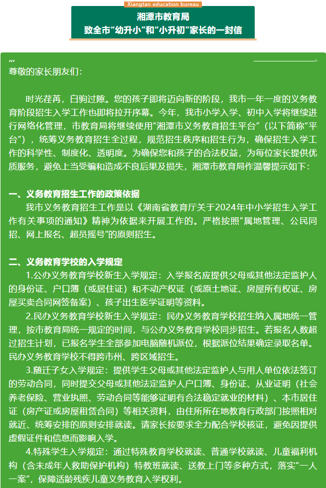 湘潭-愿景朗悅府 湘潭市教育局致全市“幼升小”和“小升初”家長的一封信