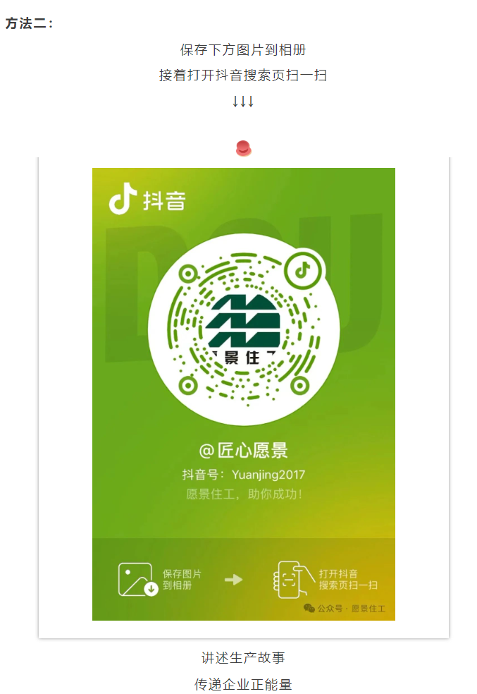愿景住工-官宣!我司抖音號正式開通,敬請關注!