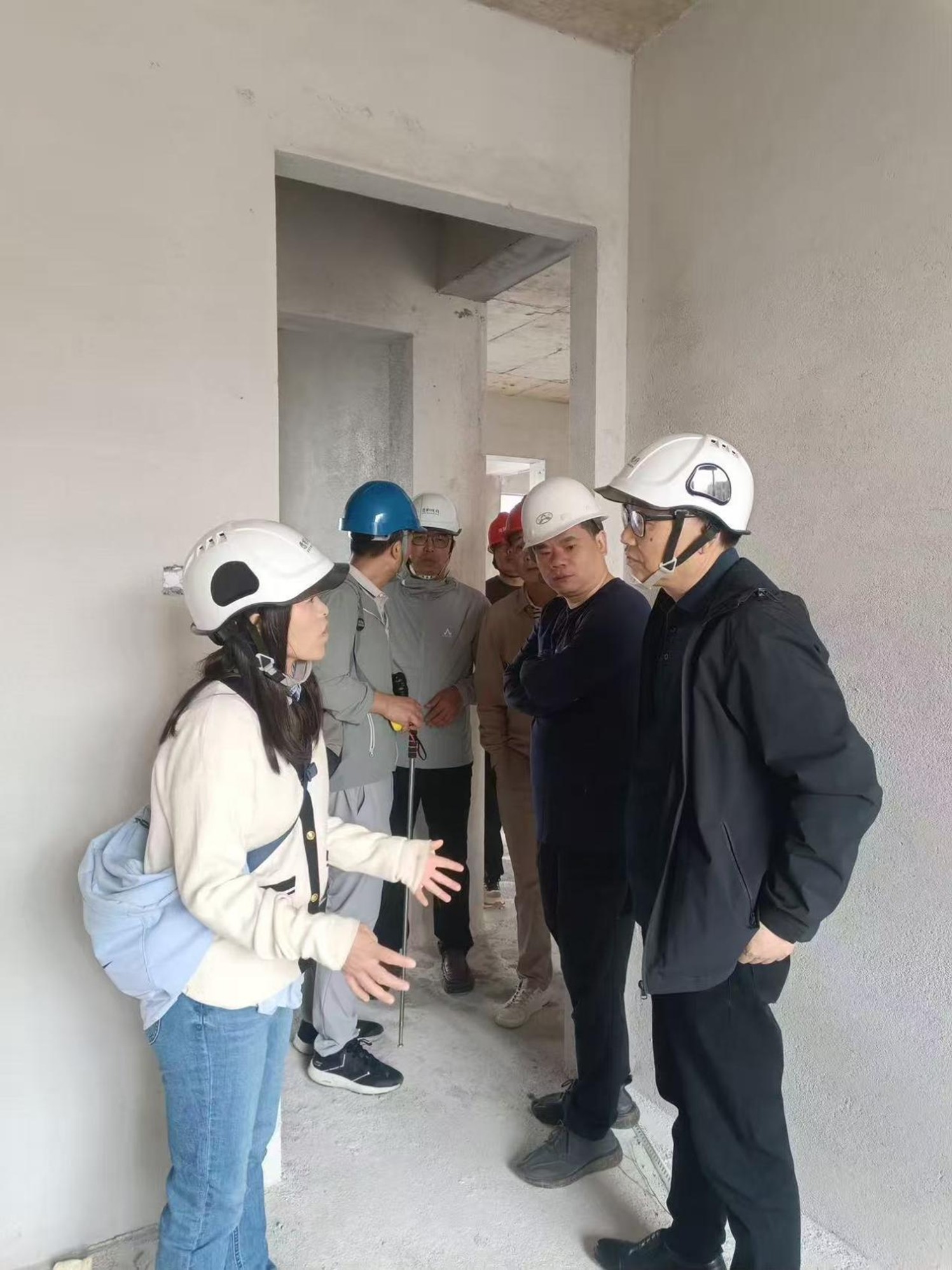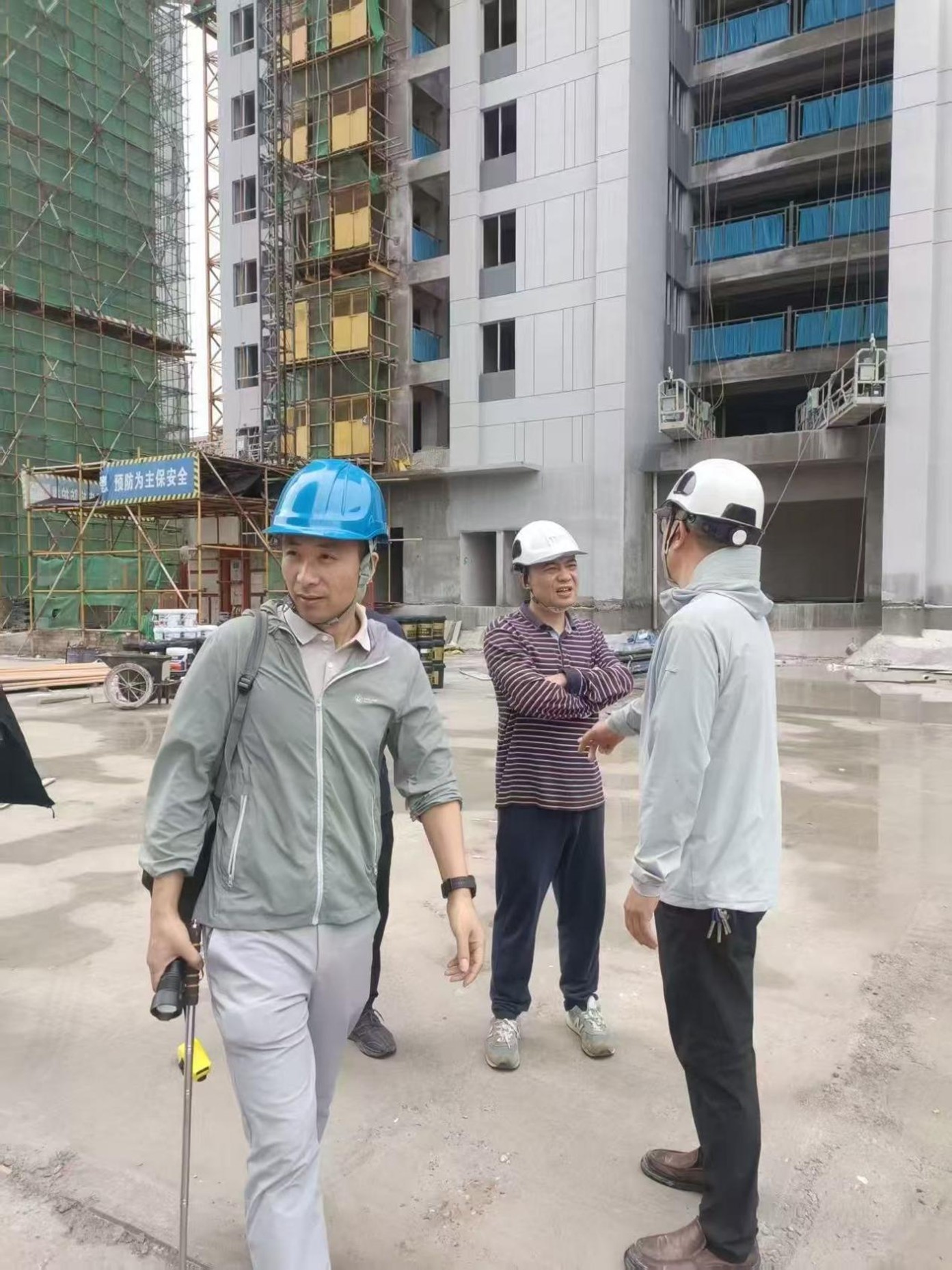 隨著雨季臨近,本次檢查由建設單位牽頭,聯合施工、監理及項目管理團隊成立專項組,圍繞“防潮控濕、工藝升級、安全護航”三大核心展開全面排查。從晨曦微露到星月交輝,檢查小組深入施工現場,逐一診斷主體結構封頂后的裝修階段細節,確保雨季施工平穩推進。