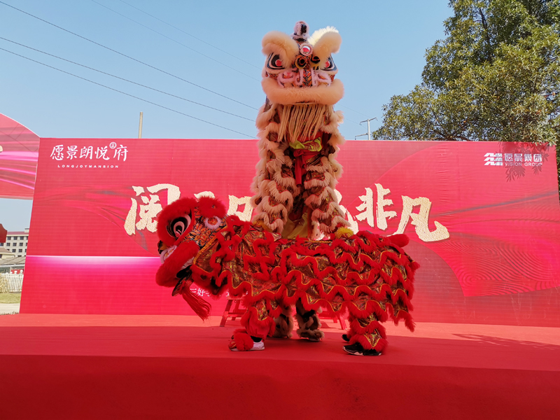 醒獅隊(duì)鑼鼓震天以極高的熱情歡迎大家的到來