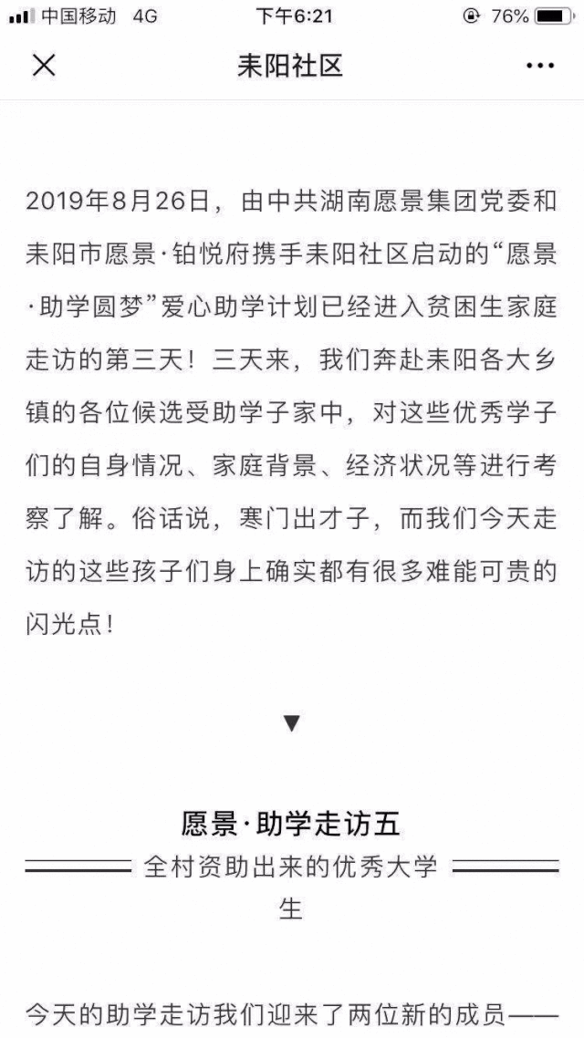 在此次愛心助學計劃之前,愿景集團已在長沙縣、益陽安化等多地開展教育扶貧公益活動,并已資助數(shù)十名大學生順利完成學業(yè)。