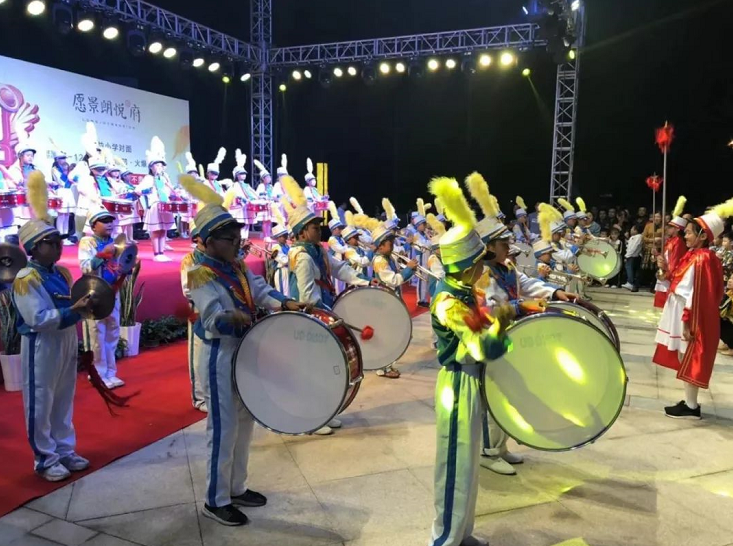 愿景·朗悅府以“一路芳華,金秋同悅”為主題的首屆業主答謝會正式開始,隨后由來自項目對面三益小學的學生來現場的號鼓隊進行表演。