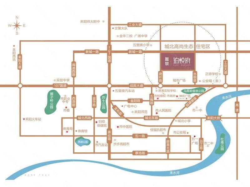 項目北臨迎賓大道往西可達耒陽高鐵站、火車站;南靠金陽路直通老城區,西連五里牌汽車站,讓您輕松往返市縣各區;東接G4京港高速路口到達全國各地。
