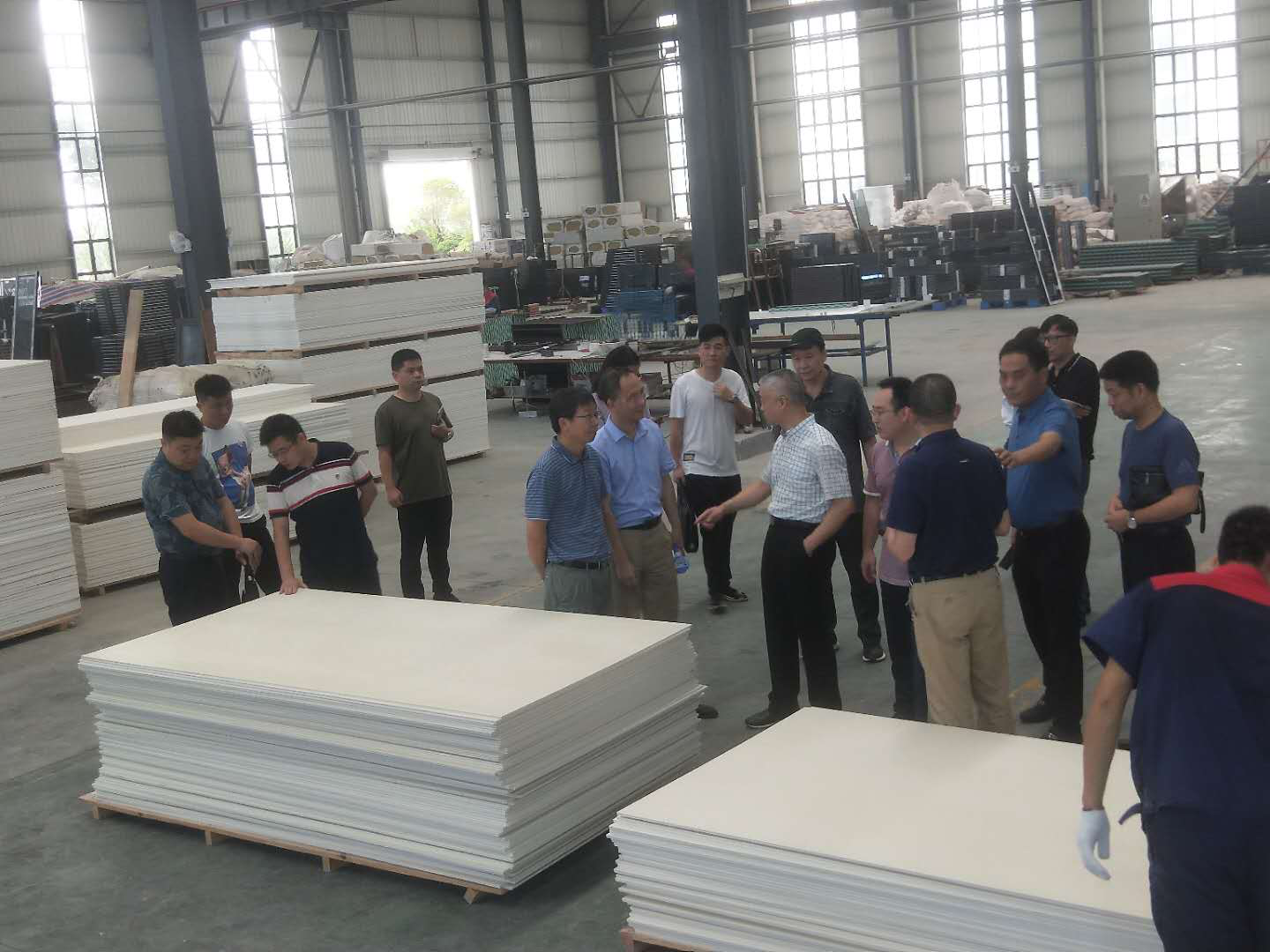 胡安邦副市長一行參觀考察了我公司裝配式預制構件生產線、環保涂料生產線、生物質木塑型材生產線、節能門窗生產線、硅酸鈣裝飾板生產線及樣板房和材料展示中心,對我公司致力科技創新及新產品開發的做法給予了充分肯定,并希望我公司充分發揮人才和技術優勢,抓住發展機遇,盡快做大做強企業。