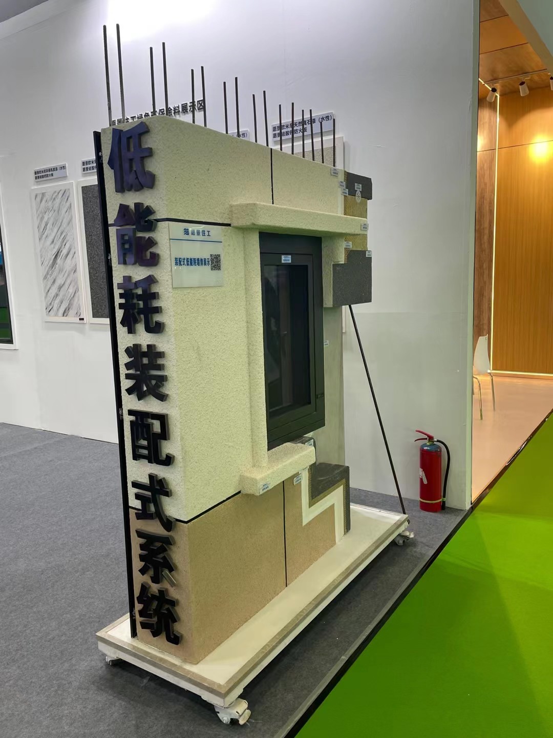 本次展會中受到參觀者關注的還有愿景住工的低能耗裝配式系統,采用愿景住工pc預制墻體,防水透氣膜,石墨聚苯板,無熱橋錨栓,抗堿網格布,抗裂砂漿層,封閉底漆,共同組成的低能耗裝配式外圍護系統,具有高度保溫隔熱以及良好的氣密性。天然真石漆和EPS線條,提高了建筑的美觀度。被動式門窗采用無熱橋、鋁包木工藝。窗戶的透明部分由3層6毫米玻璃及無熱橋暖邊系統組成,玻璃空腔內充氬氣,具有良好的保溫、隔音、隔熱性能。由于此低能耗裝配系統具有高度保溫隔熱和高度氣密性,提高了房屋的舒適性,可利用于綠色被動房的建造。希望此項技術能在更多裝配式建筑中使用,降低能耗,交還更多的藍天、白云。