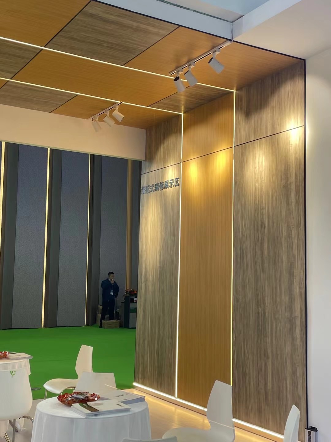 愿景集團愿景住工位于E2館智能建造與建筑工業化(裝配式建筑產業基地/行業標桿/裝配式部品部件)展區,本次愿景住工以“裝配式裝修”為參展主題,現場展館內各種裝配式裝修的裝飾板材成為展會吸晴熱點。