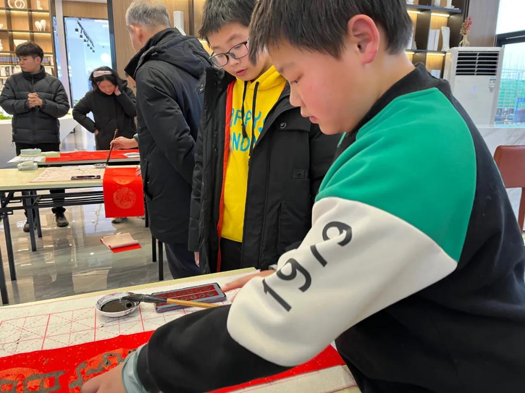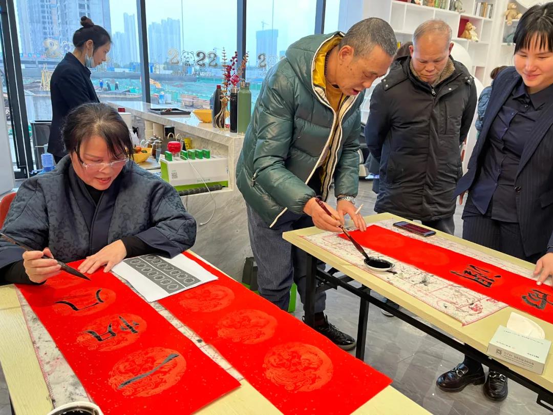 活動當天,數位知名書法家現場揮毫。 紅紙翰墨上厚重筆力,字字滲透著祝福。沾墨、起筆、收筆,一起一落之間,真摯的新年祈愿躍然紙上,為在場嘉賓送上獨具一格的賀歲致辭。